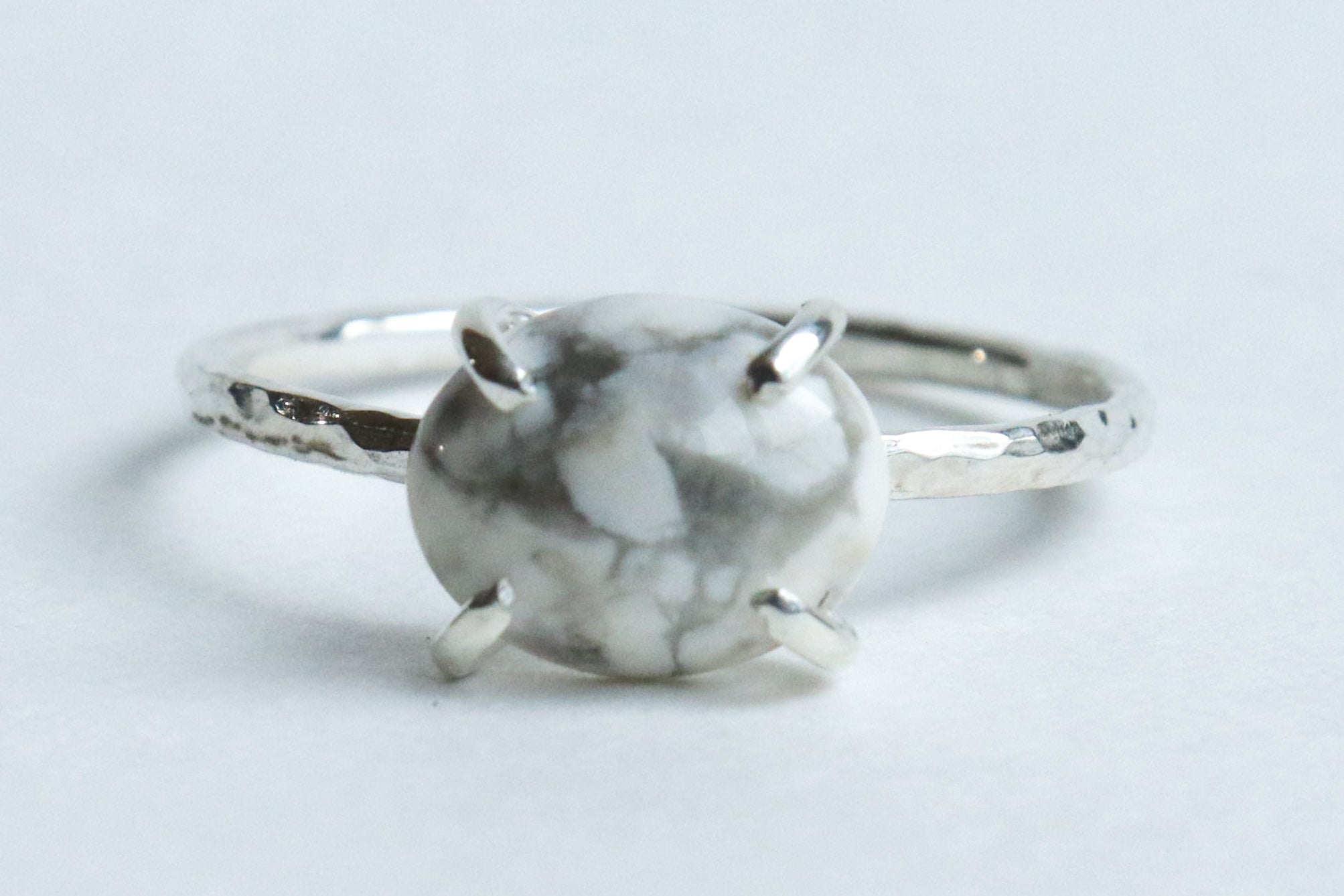 This stone stacking ring is the perfect bold addition to any collection. You have options! Choose any or try stacking all 3 of these natural stones. Options are white howlite, variscite, or sodalite paired with a simple lightly textured sterling silver band. Available in US sizes 3-13. Made to order if not in stock.